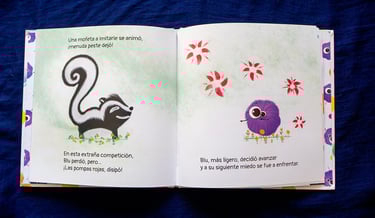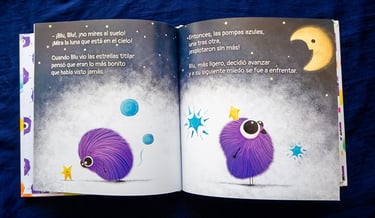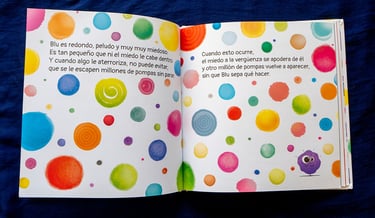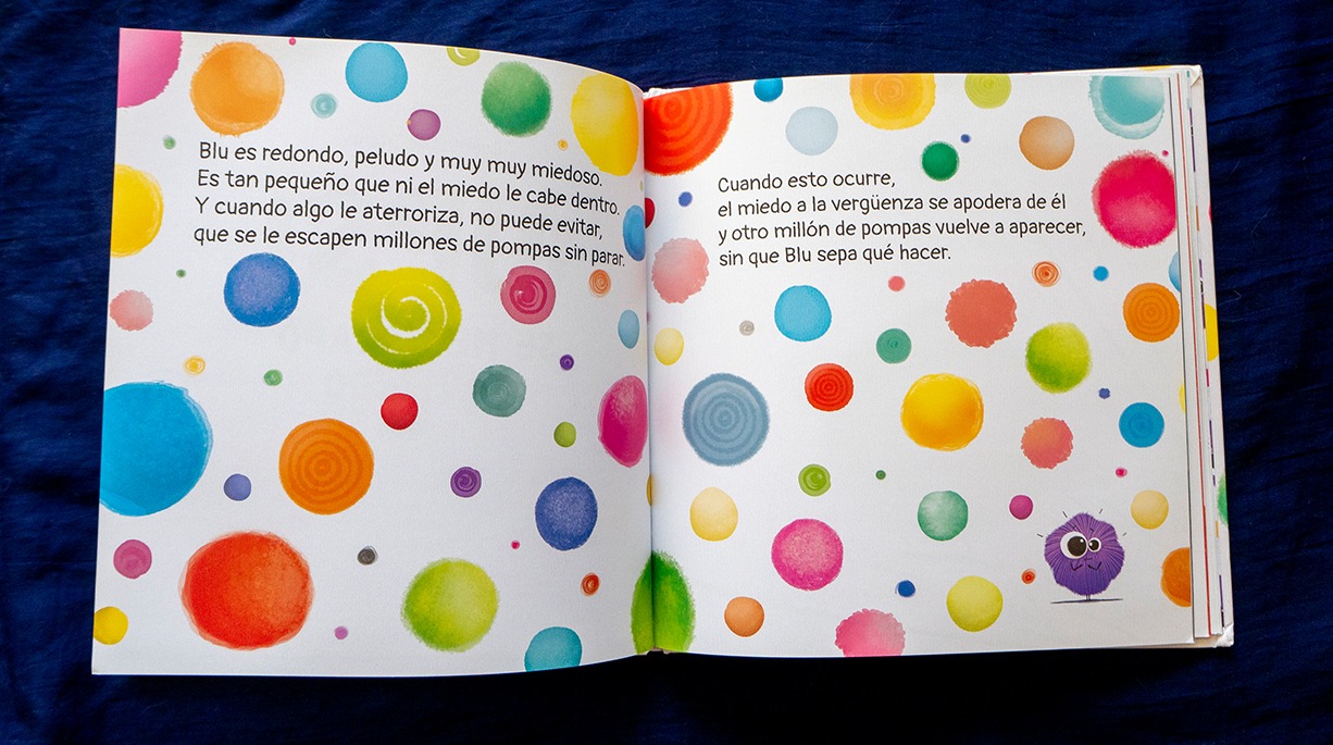 Cuando Blu tiene miedo, se le escapan un montón de pompas de colores sin que sepa qué hacer, ¡Que vergüenza le hacen pasar! Con la ayuda de nuevos amigos que encontrará en su camino conseguirá hacerlas explotar e ir superando sus miedos.